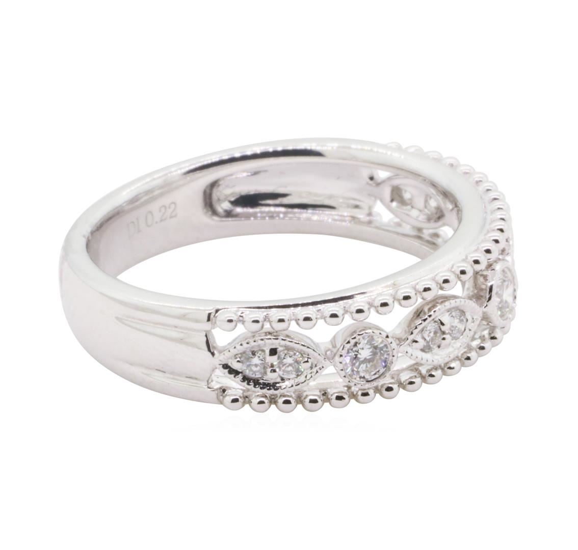 One lady's ring featuring: 18KT white gold weighing 4.5 grams containing diamonds weighing 0.22ctw.