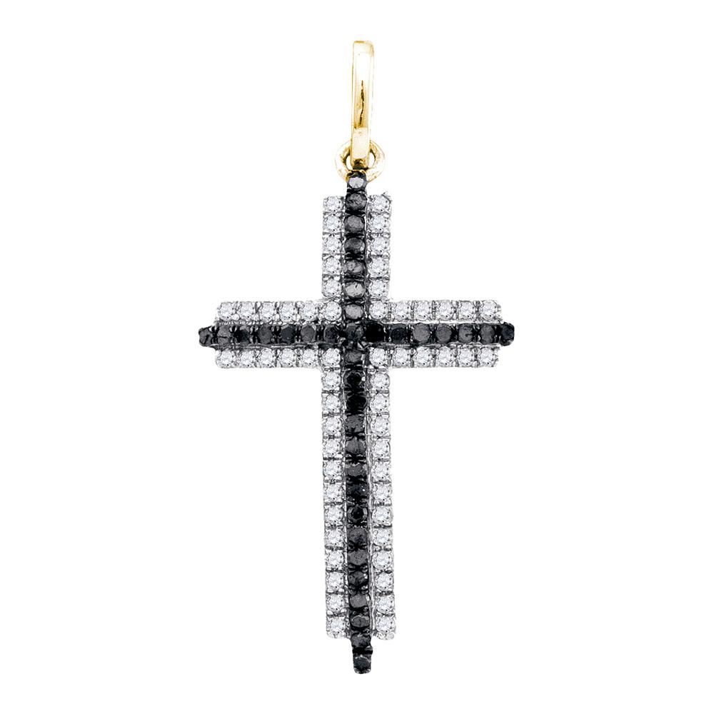 REF-14M9H- SKU: GD86334 ---- 0.23 CTW Black Color Diamond Cross Faith Pendant 10KT Yellow Gold