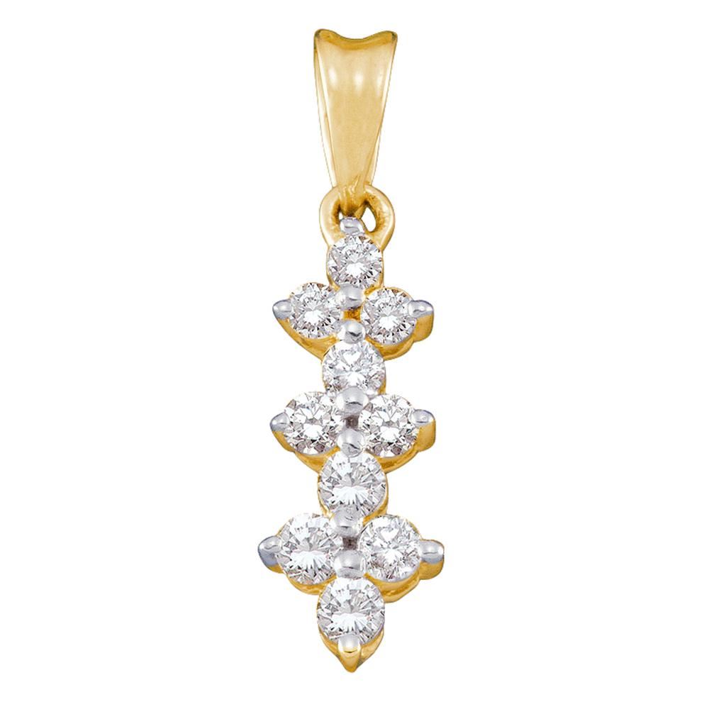 REF-18M2H- SKU: GD28253 ---- 0.23 CTW Diamond Small Triple Cluster Dangle Pendant 14KT Yellow Gold