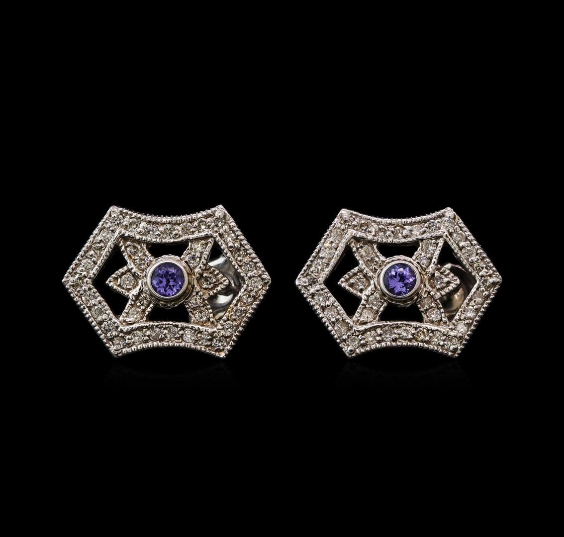 One pair of earrings featuring: 14KT white gold containing Tanzanites with a total weight of 0.23ct and diamonds with a total weight of 0.60ctw.