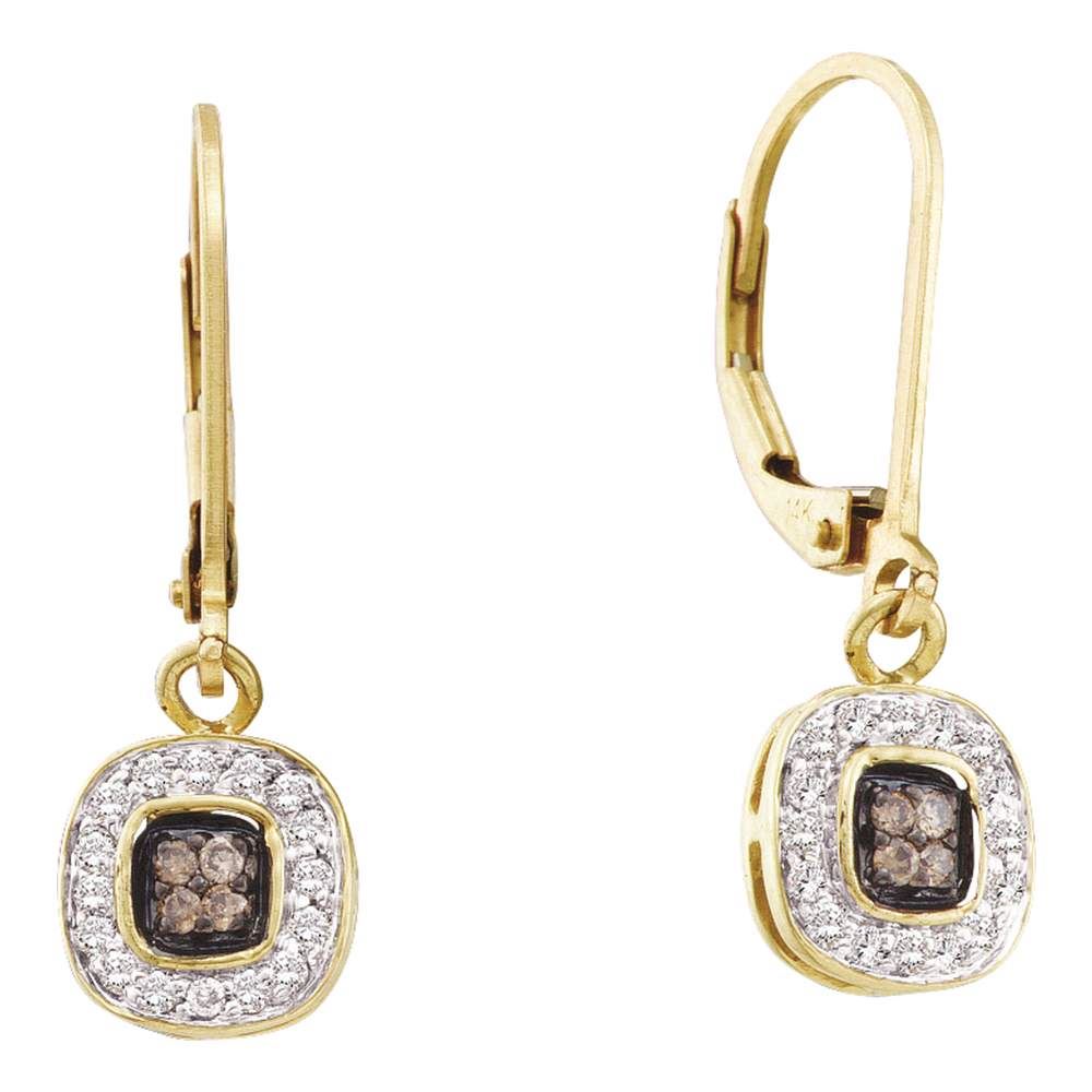 REF-30N2F- SKU: GD51632 ---- 0.24 CTW Cognac-brown Color Diamond Dangle Earrings 14KT Yellow Gold