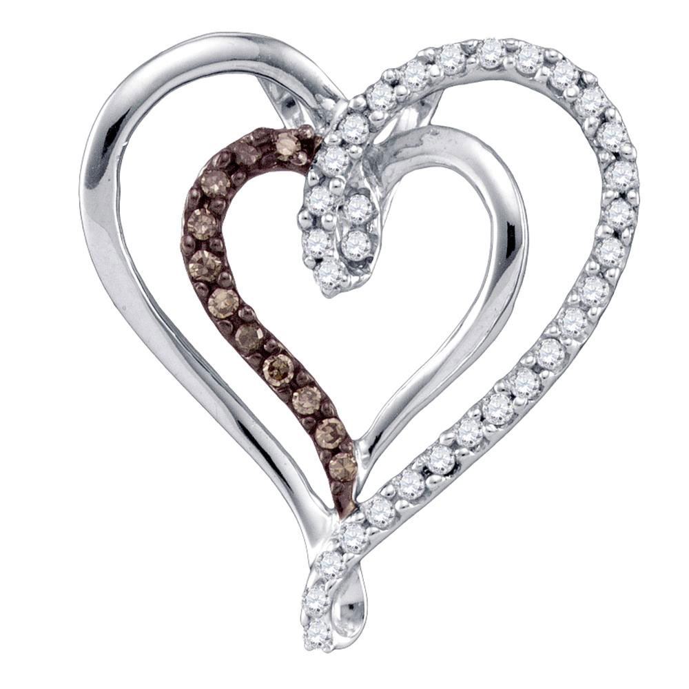 REF-22Y4X- SKU: GD72567 ---- 0.24 CTW Cognac-brown Color Diamond Double Nested Heart Pendant 10KT White Gold