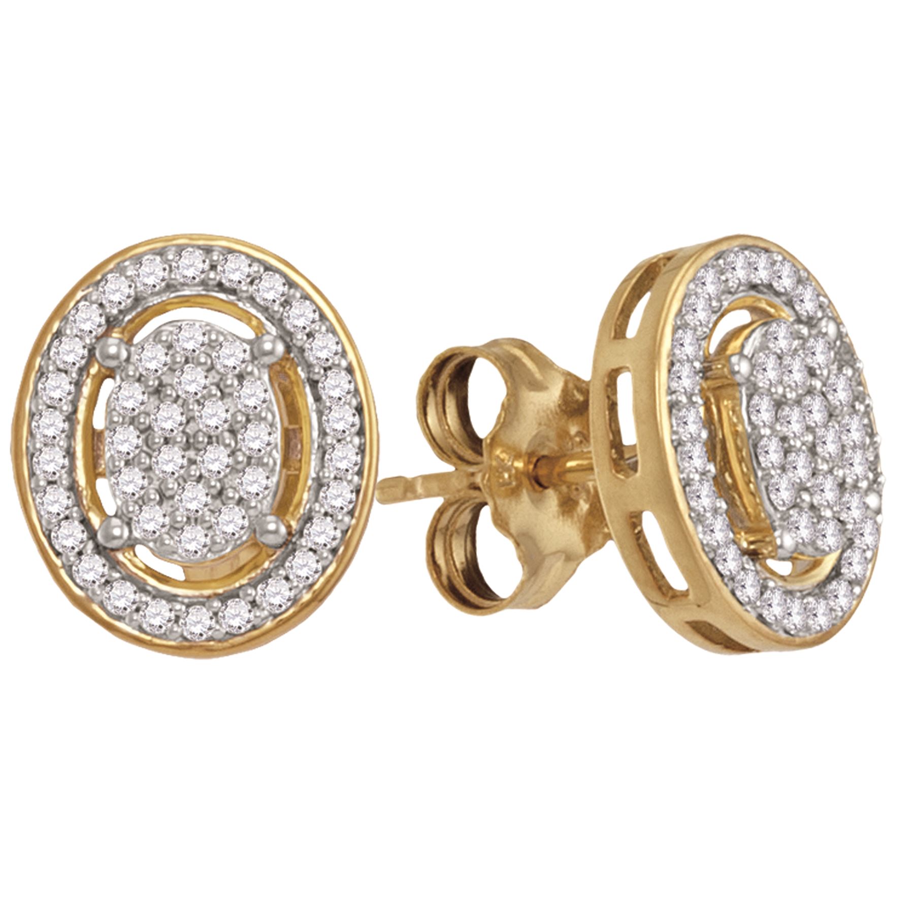 REF-22H4M- SKU: GD116323 ---- 0.24 CTW Diamond Oval Framed Cluster Screwback Earrings 10KT Yellow Gold