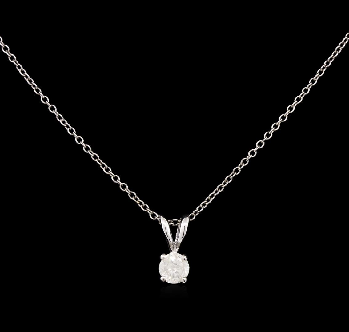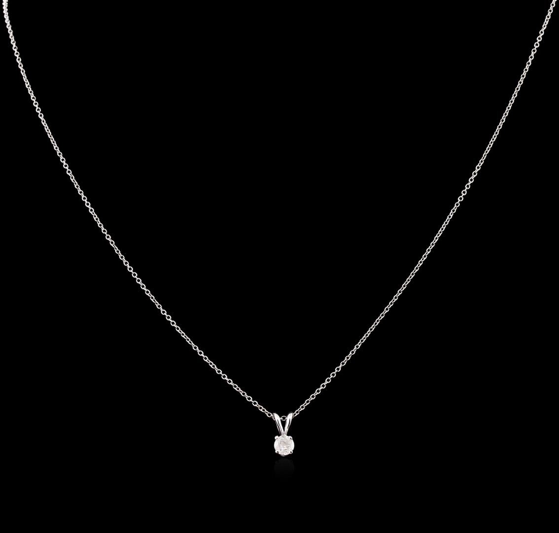 One solitaire pendant with chain featuring: 14KT white gold weighing 1.32 grams containing one diamond with a total weight of 0.24ct.