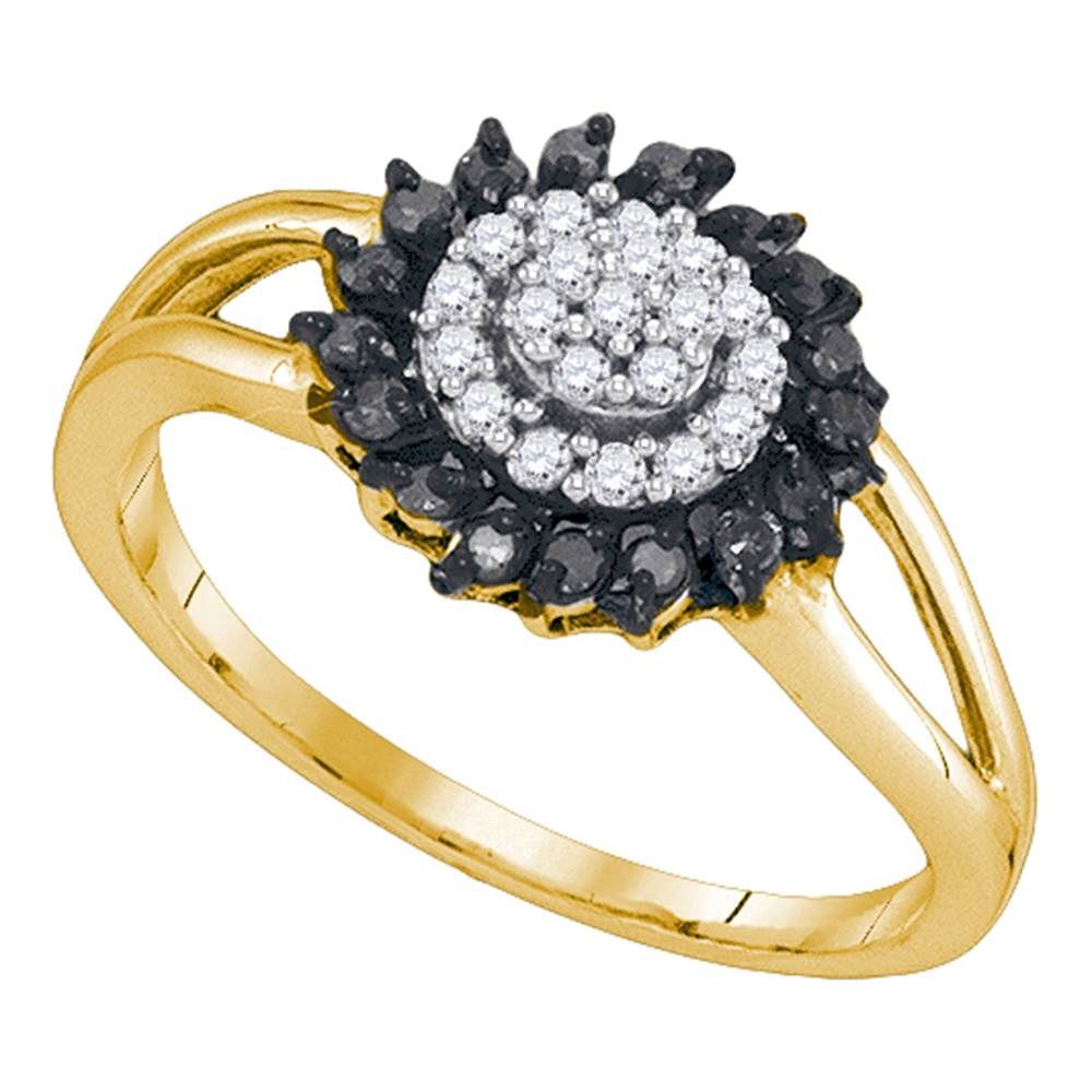 REF-18K2W- SKU: GD89439 ---- 0.25 CTW Black Color Diamond Cluster Ring 10KT Yellow Gold