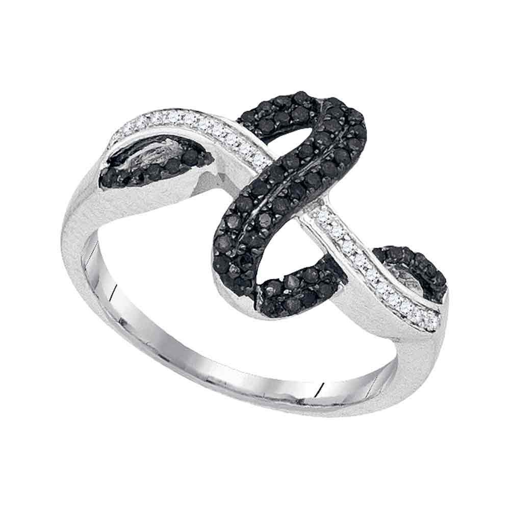 REF-24N2F- SKU: GD95220 ---- 0.25 CTW Black Color Diamond Double Strand Crossover Ring 10KT White Gold