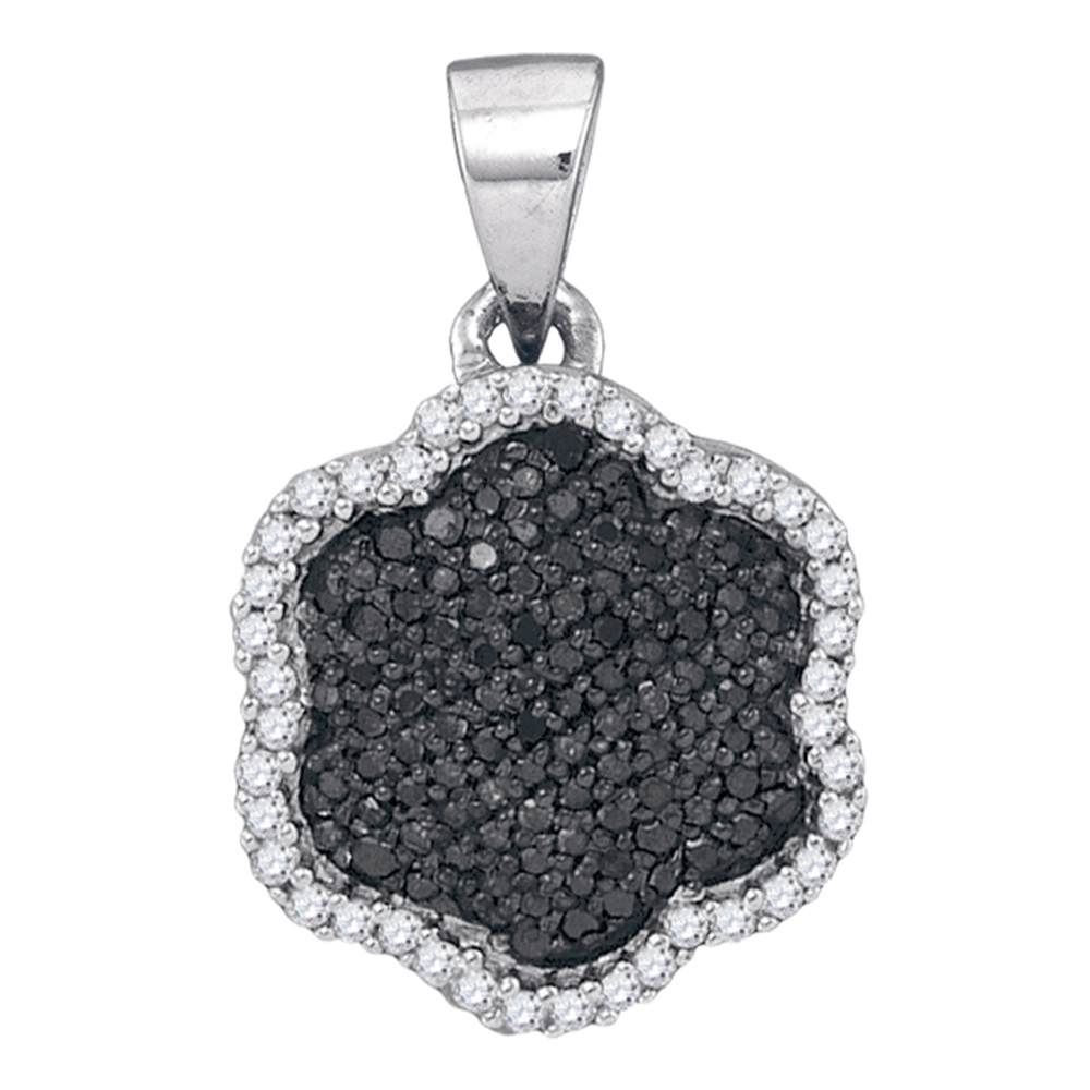 REF-16N4F- SKU: GD89680 ---- 0.25 CTW Black Color Diamond Hexagon Cluster Pendant 10KT White Gold