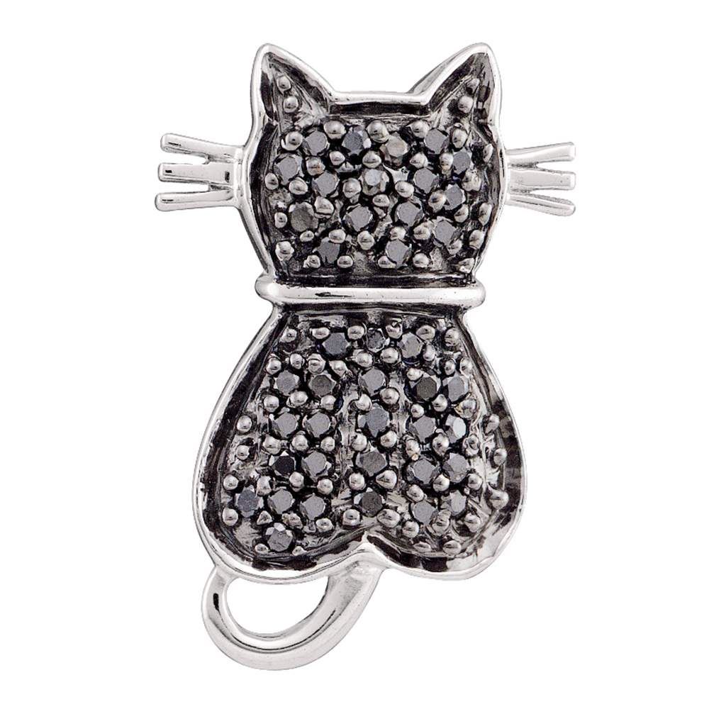 REF-22F4N- SKU: GD51623 ---- 0.25 CTW Black Color Diamond Kitty Cat Pendant 14KT White Gold