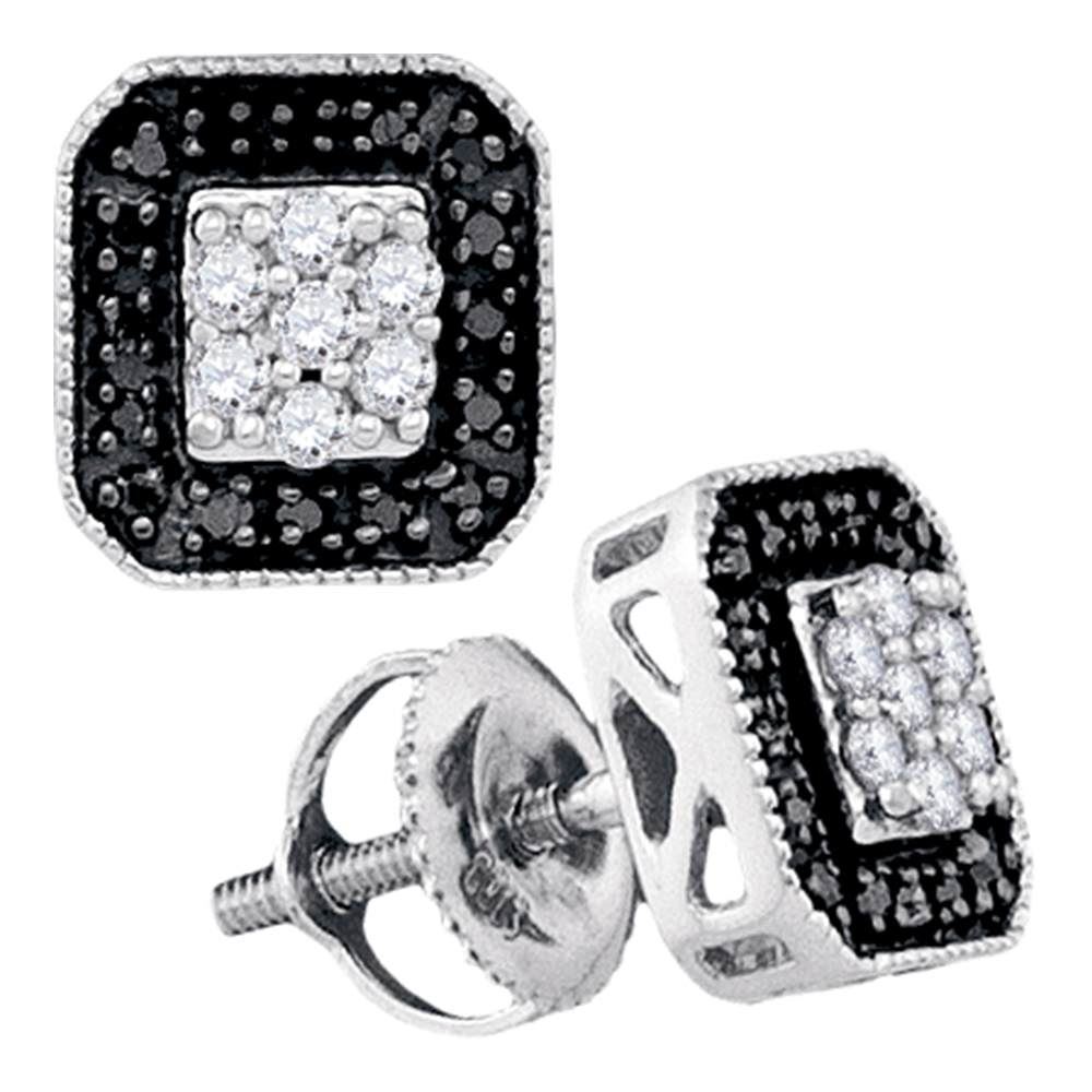 REF-19N4F- SKU: GD90241 ---- 0.25 CTW Black Color Diamond Square Cluster Earrings 10KT White Gold
