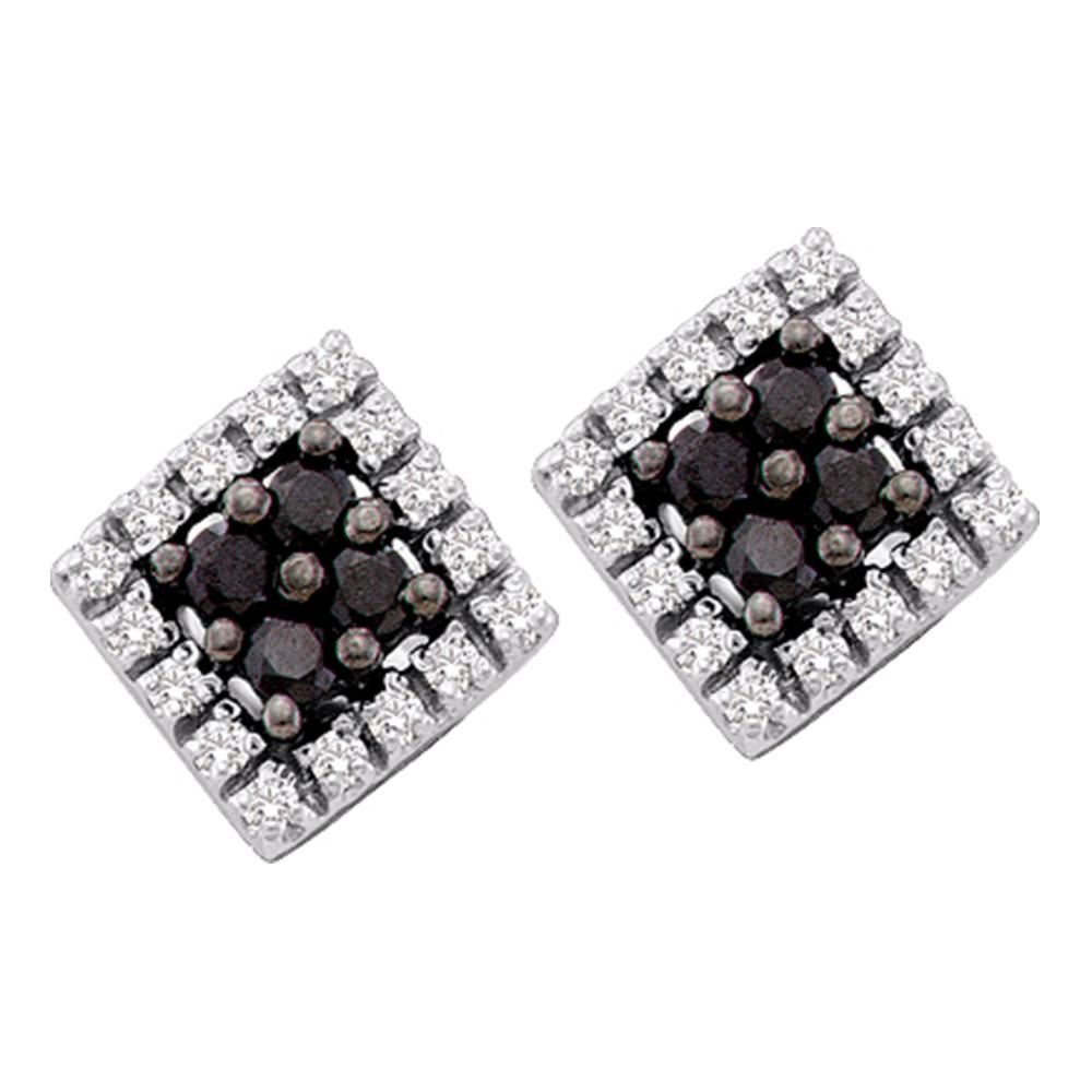 REF-18F2N- SKU: GD66722 ---- 0.25 CTW Black Color Diamond Square Cluster Earrings 14KT White Gold
