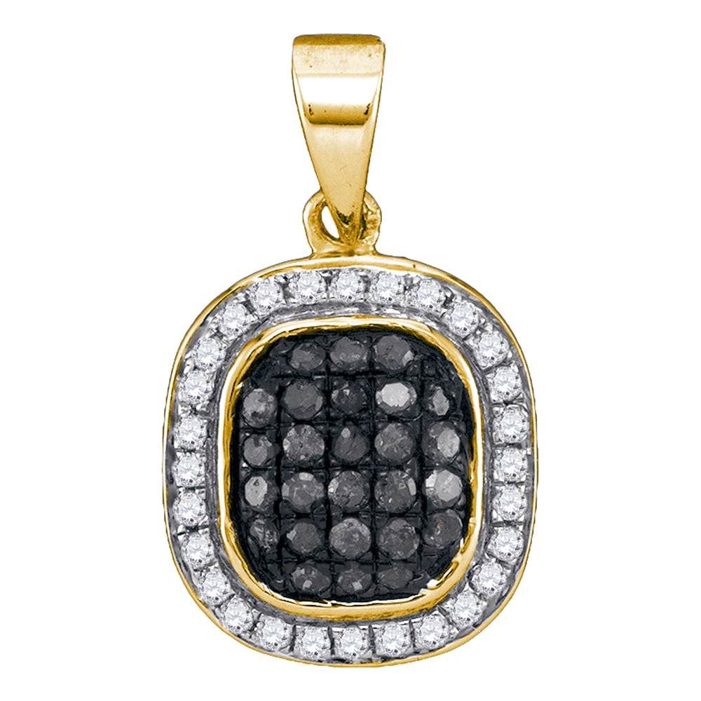 REF-14X9Y- SKU: GD88908 ---- 0.25 CTW Black Color Diamond Square Cluster Pendant 10KT Yellow Gold