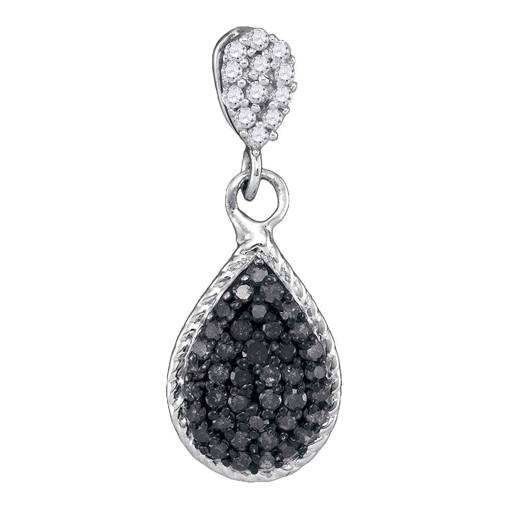 REF-12N2F- SKU: GD89052 ---- 0.25 CTW Black Color Diamond Teardrop Cluster Pendant 10KT White Gold