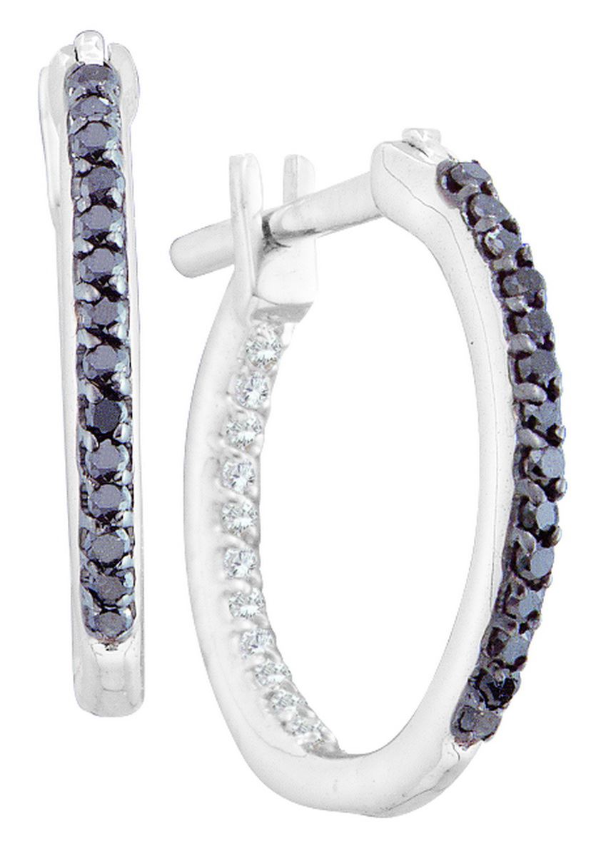 REF-32F2M ---- 0.25 CTW Black Colored Natural Diamond Inside-Outside In Out Fine Hoop Earrings 14K White Gold - SKU: GD51617