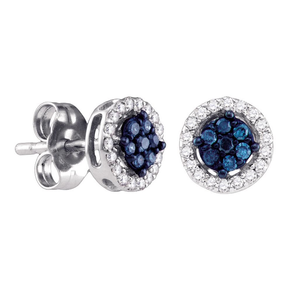 REF-19Y4X- SKU: GD66801 ---- 0.25 CTW Blue Color Diamond Cluster Stud Screwback Earrings 14k White Gold