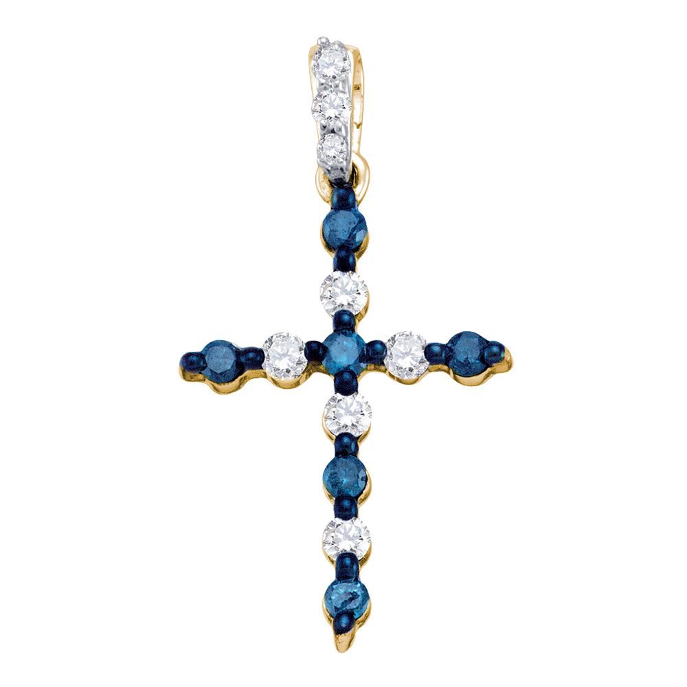 REF-13H4M- SKU: GD65965 ---- 0.25 CTW Blue Color Diamond Cross Pendant 10KT Yellow Gold