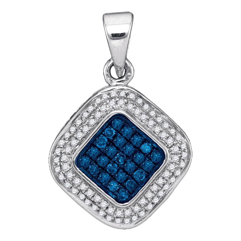 REF-18Y2X- SKU: GD88699 ---- 0.25 CTW Blue Color Diamond Diagonal Square Cluster Pendant 10KT White Gold