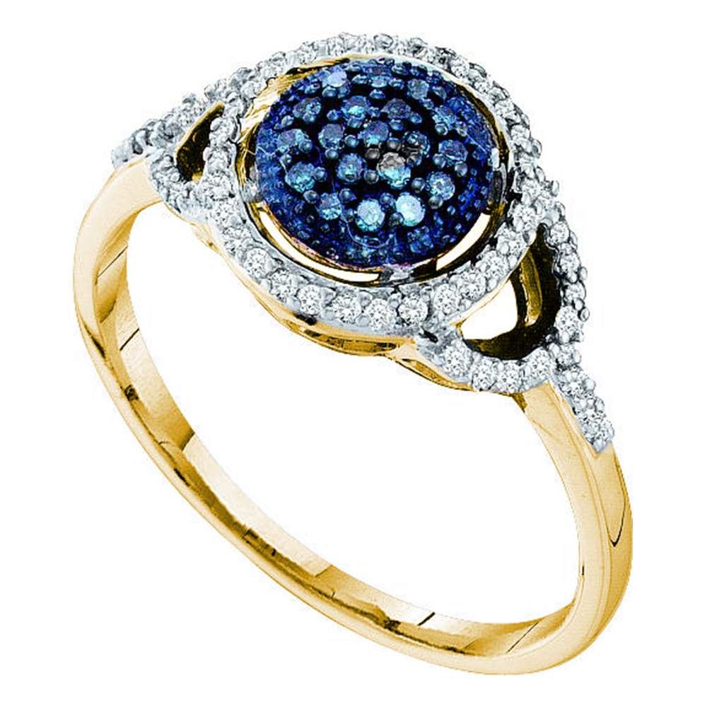 REF-20Y9X- SKU: GD56904 ---- 0.25 CTW Blue Color Diamond Framed Cluster Ring 10KT Yellow Gold