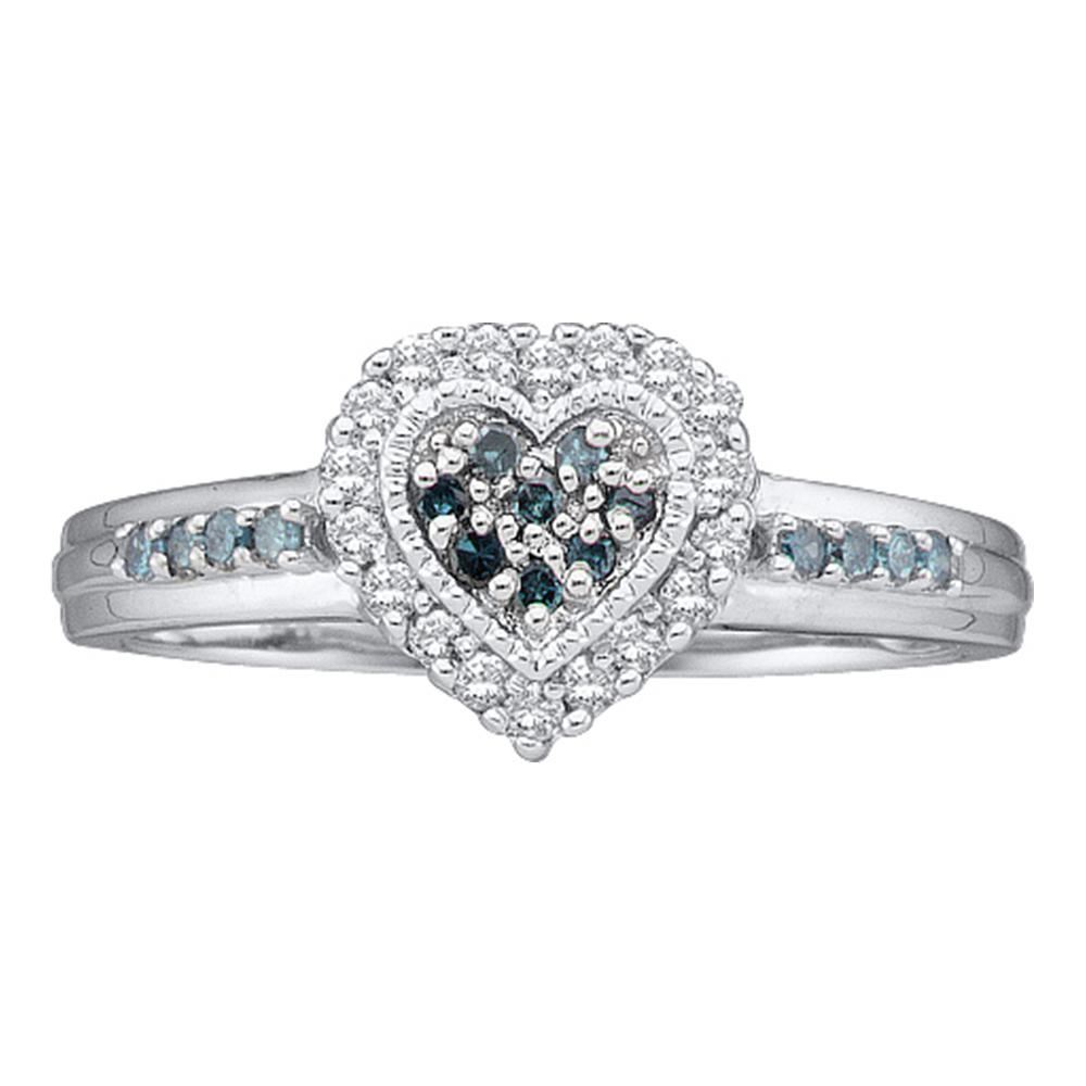 REF-30X2Y- SKU: GD29902 ---- 0.25 CTW Blue Color Diamond Heart Cluster Ring 14KT White Gold