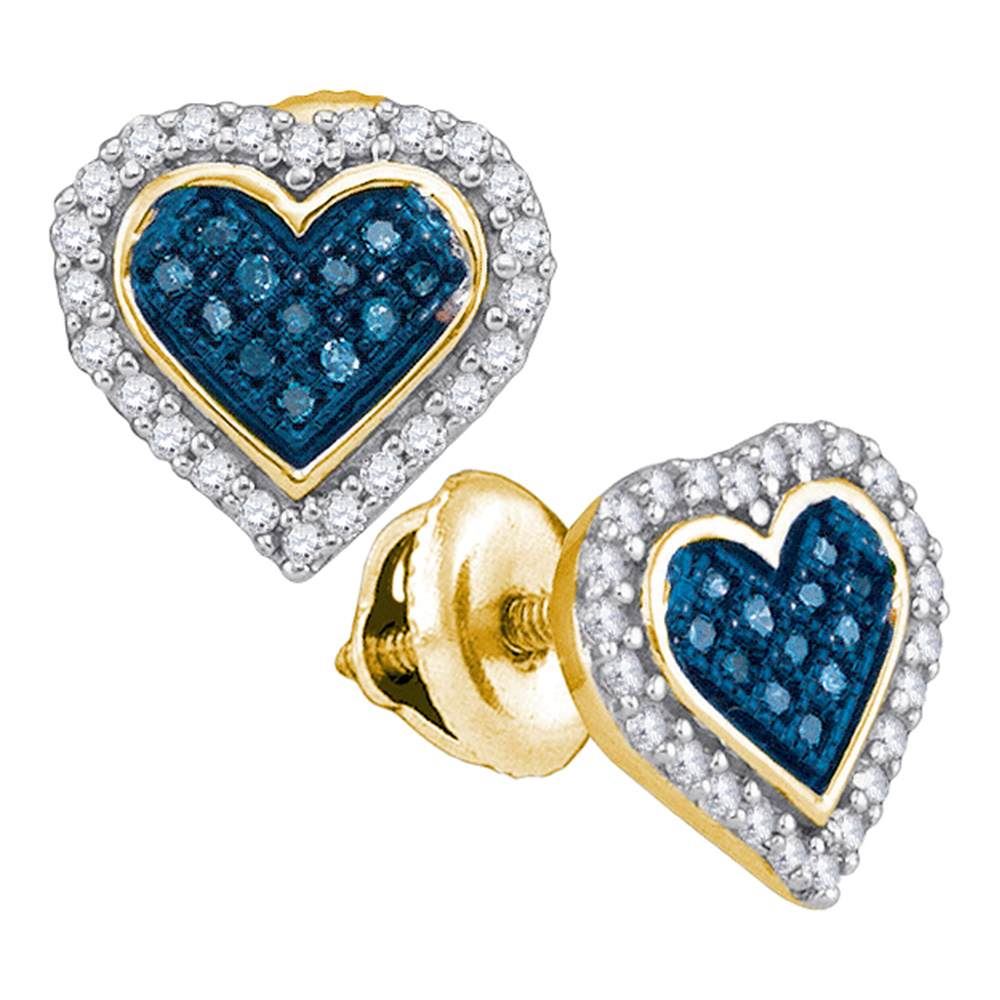 REF-19W4K- SKU: GD88941 ---- 0.25 CTW Blue Color Diamond Heart Love Stud Screwback Earrings 10KT Yellow Gold