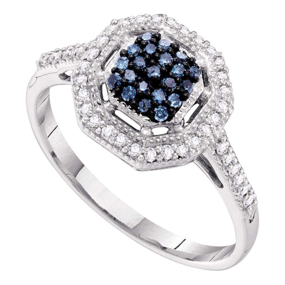 REF-25Y4X- SKU: GD56909 ---- 0.25 CTW Blue Color Diamond Octagon Cluster Ring 10KT White Gold
