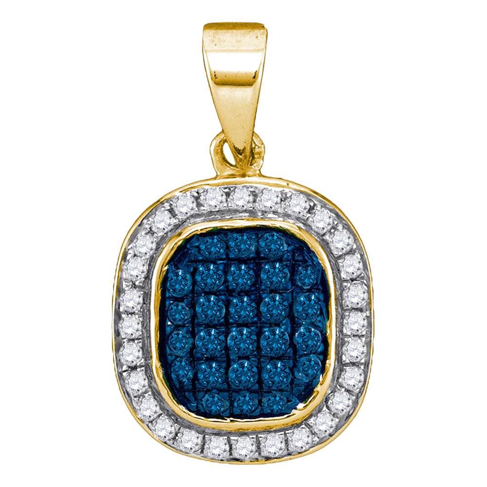 REF-14F9N- SKU: GD88916 ---- 0.25 CTW Blue Color Diamond Oval Cluster Pendant 10KT Yellow Gold