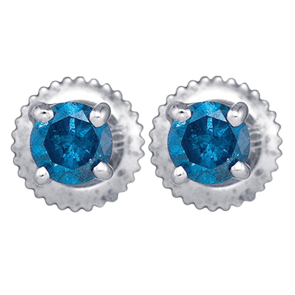 REF-13H4M- SKU: GD82639 ---- 0.25 CTW Blue Color Diamond Solitaire Stud Earrings 10KT White Gold