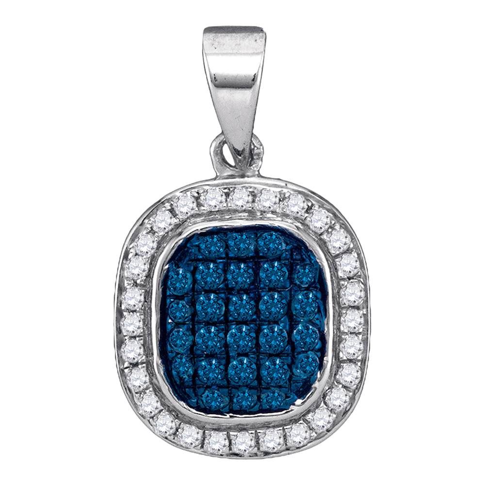 REF-14N9F- SKU: GD88915 ---- 0.25 CTW Blue Color Diamond Square Cluster Pendant 10KT White Gold