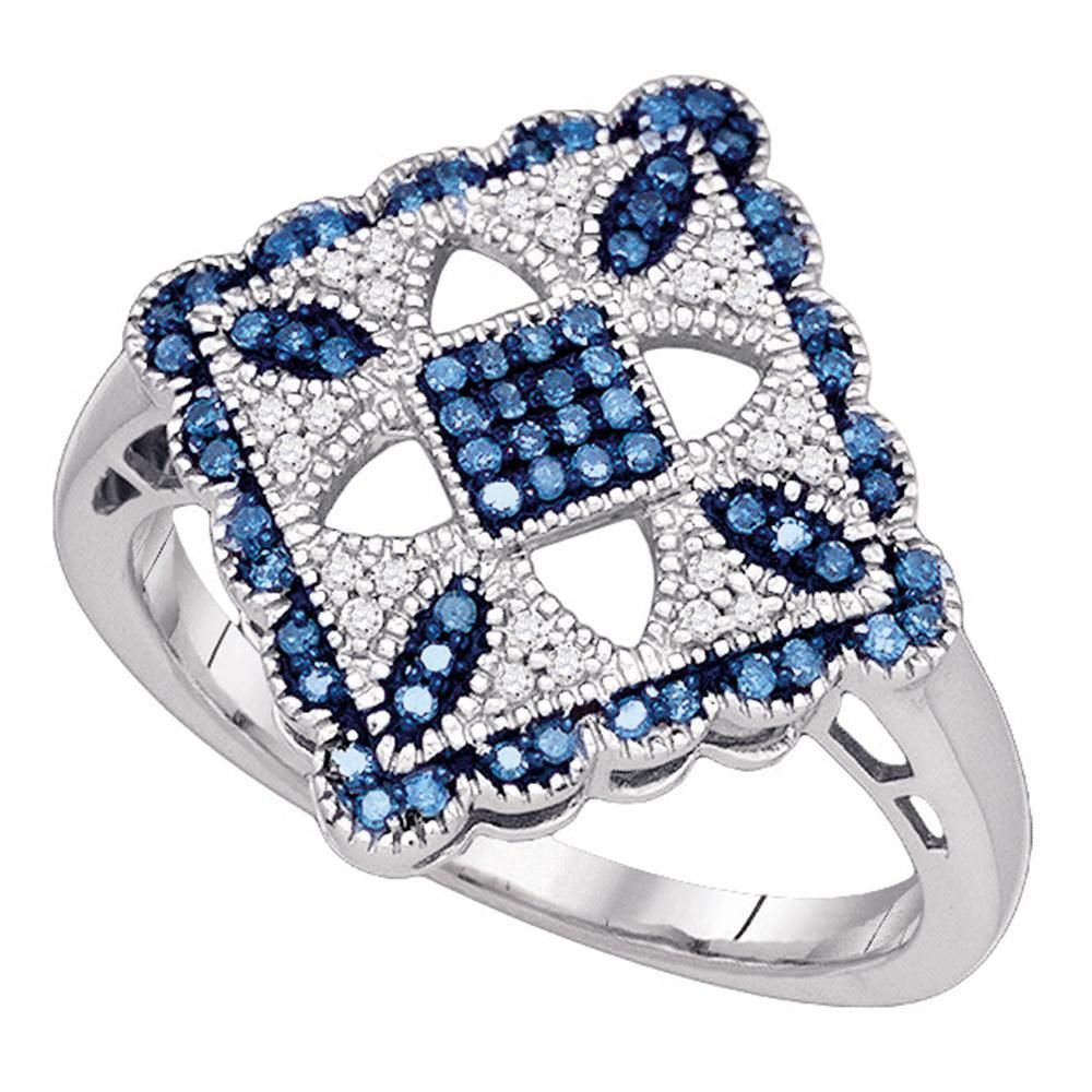 REF-34N4F- SKU: GD81422 ---- 0.25 CTW Blue Color Diamond Square Cluster Ring 10KT White Gold