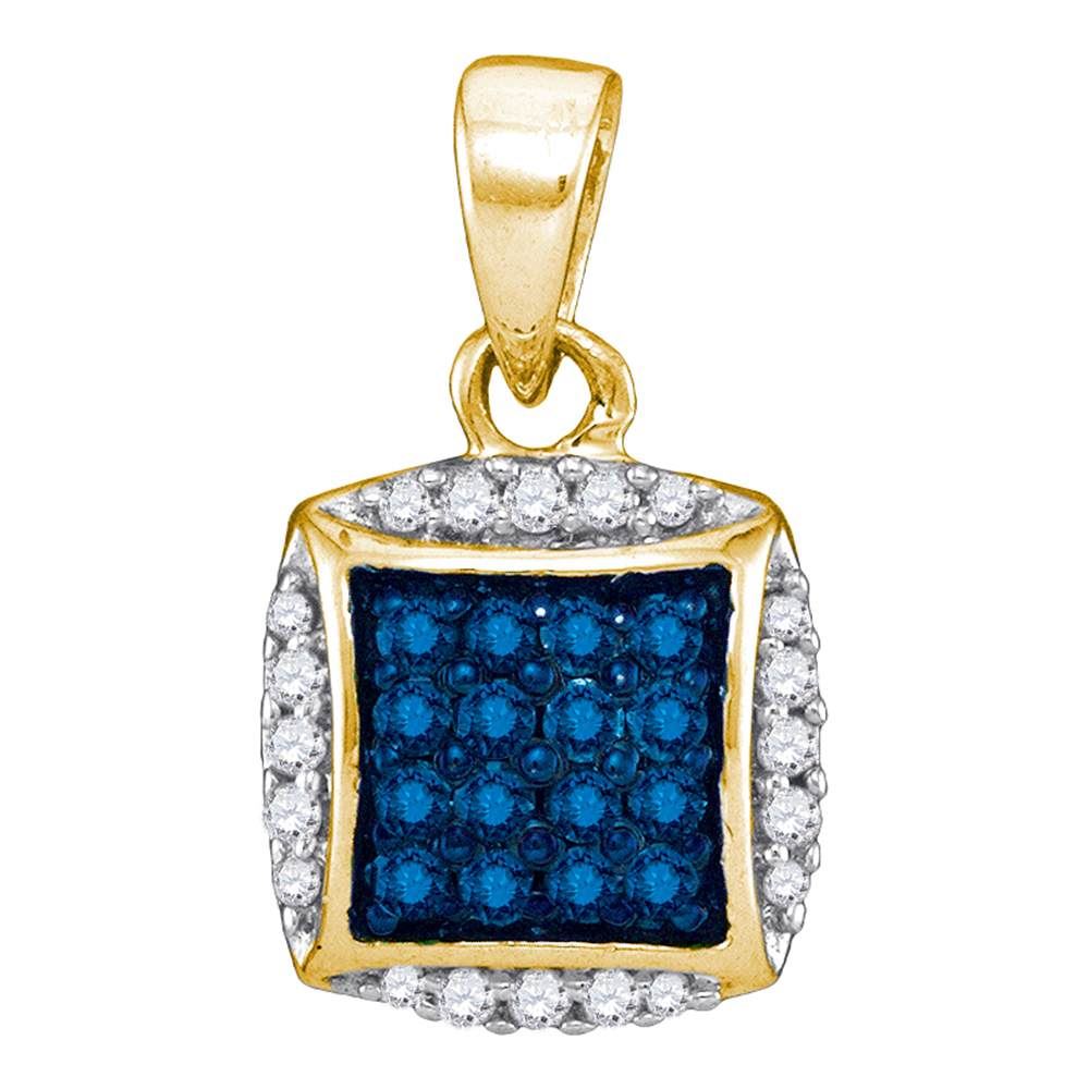REF-13F4N- SKU: GD88800 ---- 0.25 CTW Blue Color Diamond Square Pendant 10KT Yellow Gold