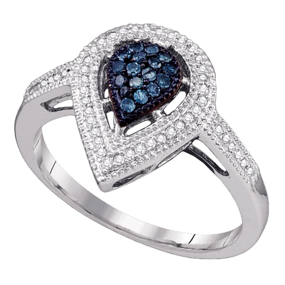 REF-37N5F- SKU: GD66819 ---- 0.25 CTW Blue Color Diamond Teardrop Cluster Ring 14KT White Gold
