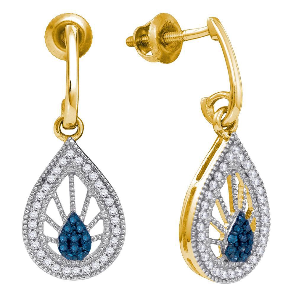 REF-26X9Y- SKU: GD81591 ---- 0.25 CTW Blue Color Diamond Teardrop Screwback Earrings 10KT Yellow Gold