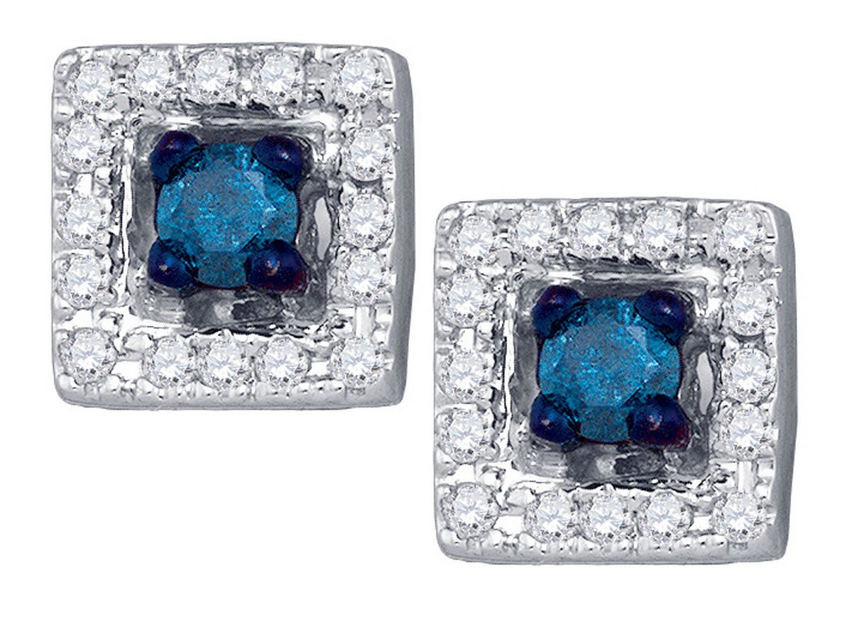 REF-32A2N ---- 0.25 CTW Blue Colored Diamond Square Earrings 10K White Gold - SKU: GD75022
