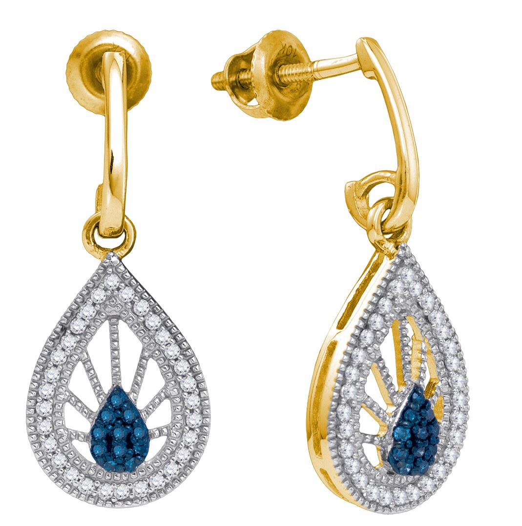 REF-35H9X ---- 0.25 CTW Blue Colored Diamond Teardrop Screwback Earrings 10K Yellow Gold - SKU: GD81591