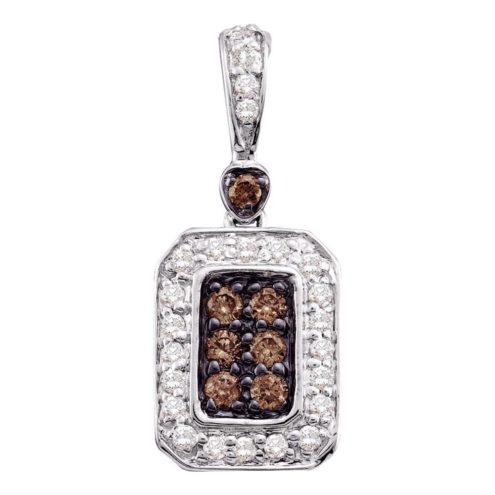 REF-25Y4X- SKU: GD70851 ---- 0.25 CTW Cognac-brown Color Diamond Rectangle Cluster Pendant 10KT White Gold