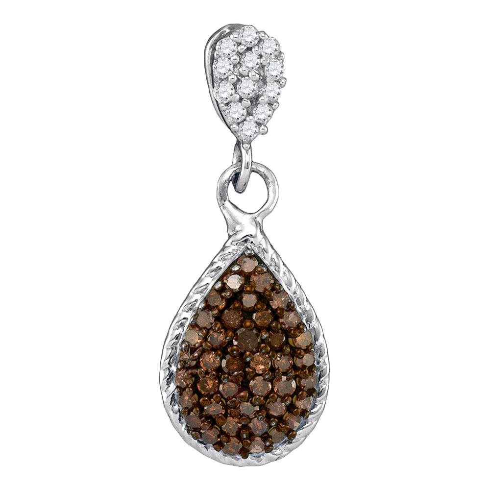 REF-11H2M- SKU: GD89058 ---- 0.25 CTW Cognac-brown Color Diamond Teardrop Cluster Pendant 10KT White Gold