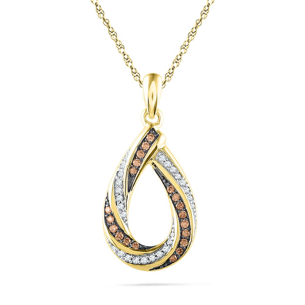 REF-19N4F- SKU: GD100862 ---- 0.25 CTW Cognac-brown Color Diamond Teardrop Pendant 10KT Yellow Gold