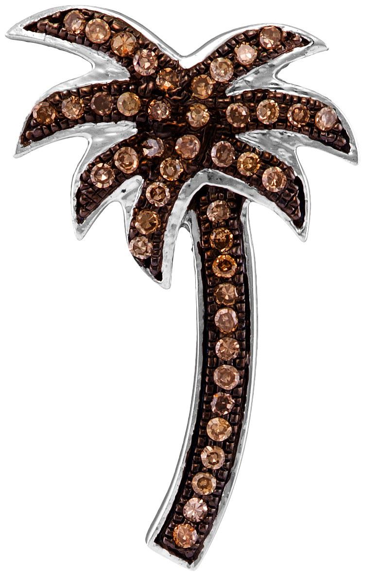 REF-21M9A ---- 0.25 CTW Cognac-brown Colored Diamond Palm Tree Nautical Fine Pendant 10K White Gold - SKU: GD104370