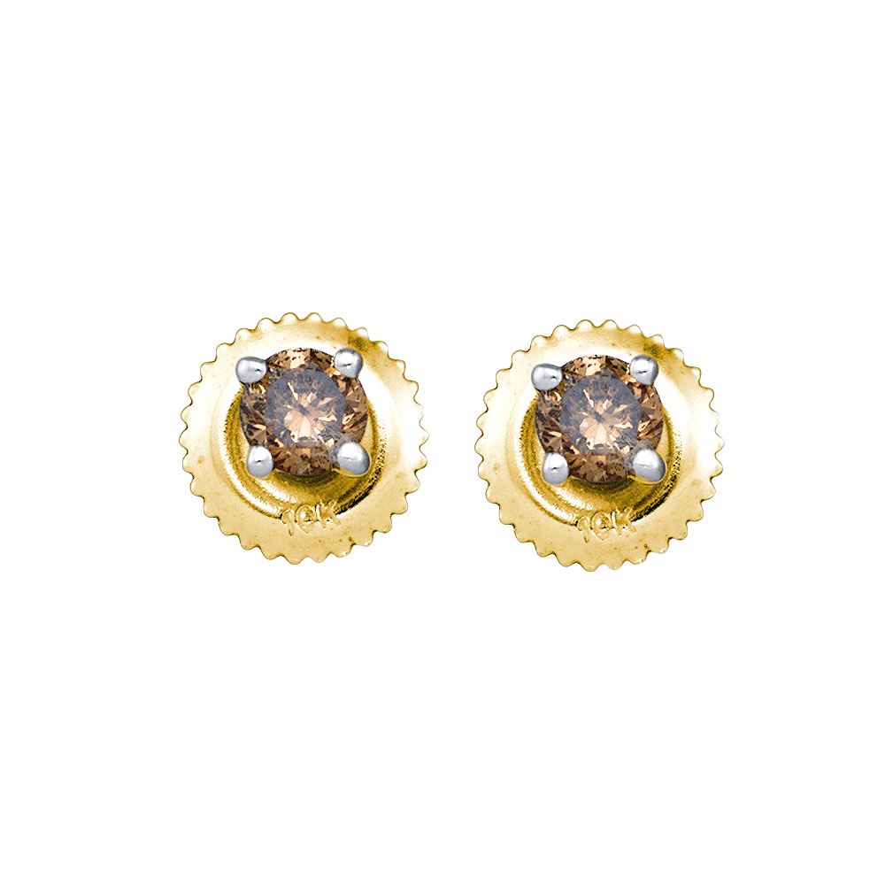 REF-13F9M ---- 0.25 CTW Cognac-brown Colored Diamond Solitaire Stud Screwback Earrings 10K Yellow Gold - SKU: GD82792