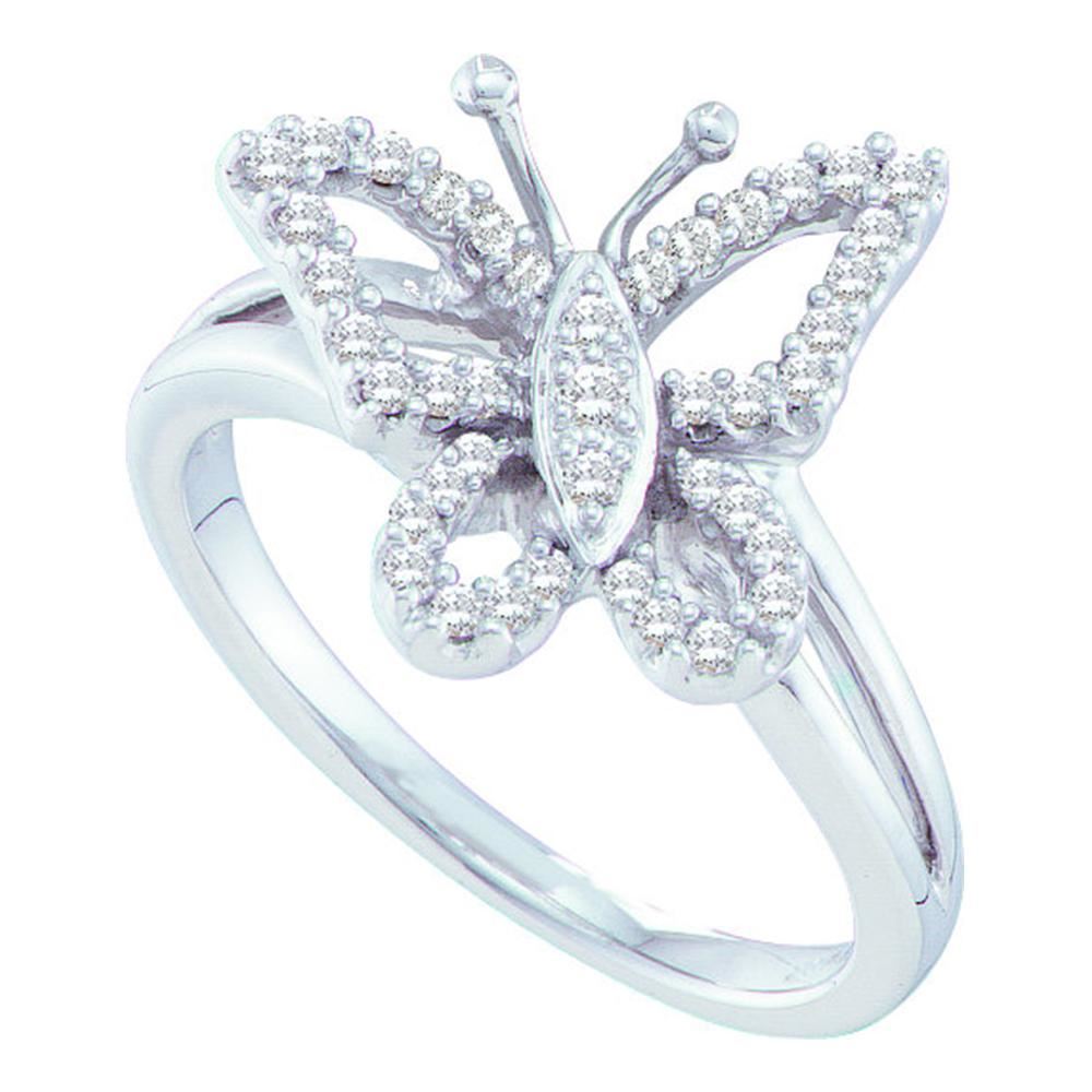 REF-44X9Y- SKU: GD29662 ---- 0.25 CTW Diamond Butterfly Bug Cluster Ring 14KT White Gold