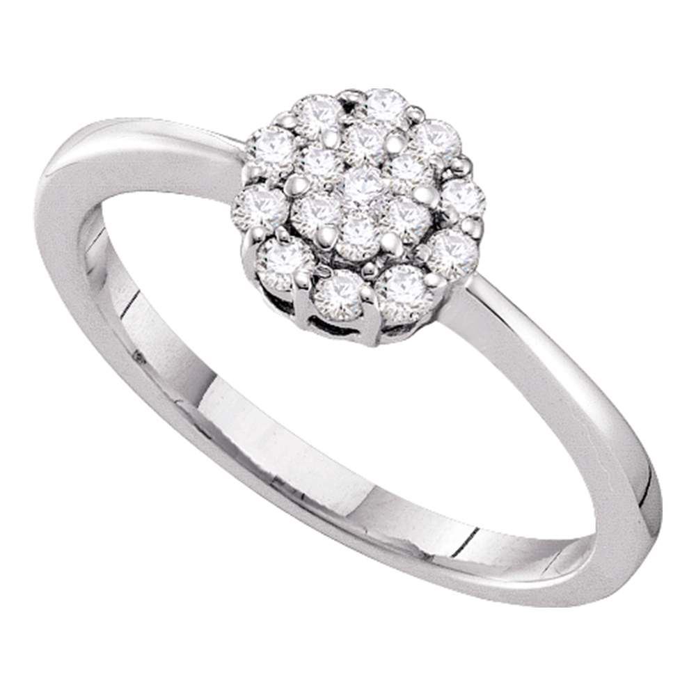REF-30Y2X- SKU: GD46734 ---- 0.25 CTW Diamond Circle Flower Cluster Ring 14KT White Gold