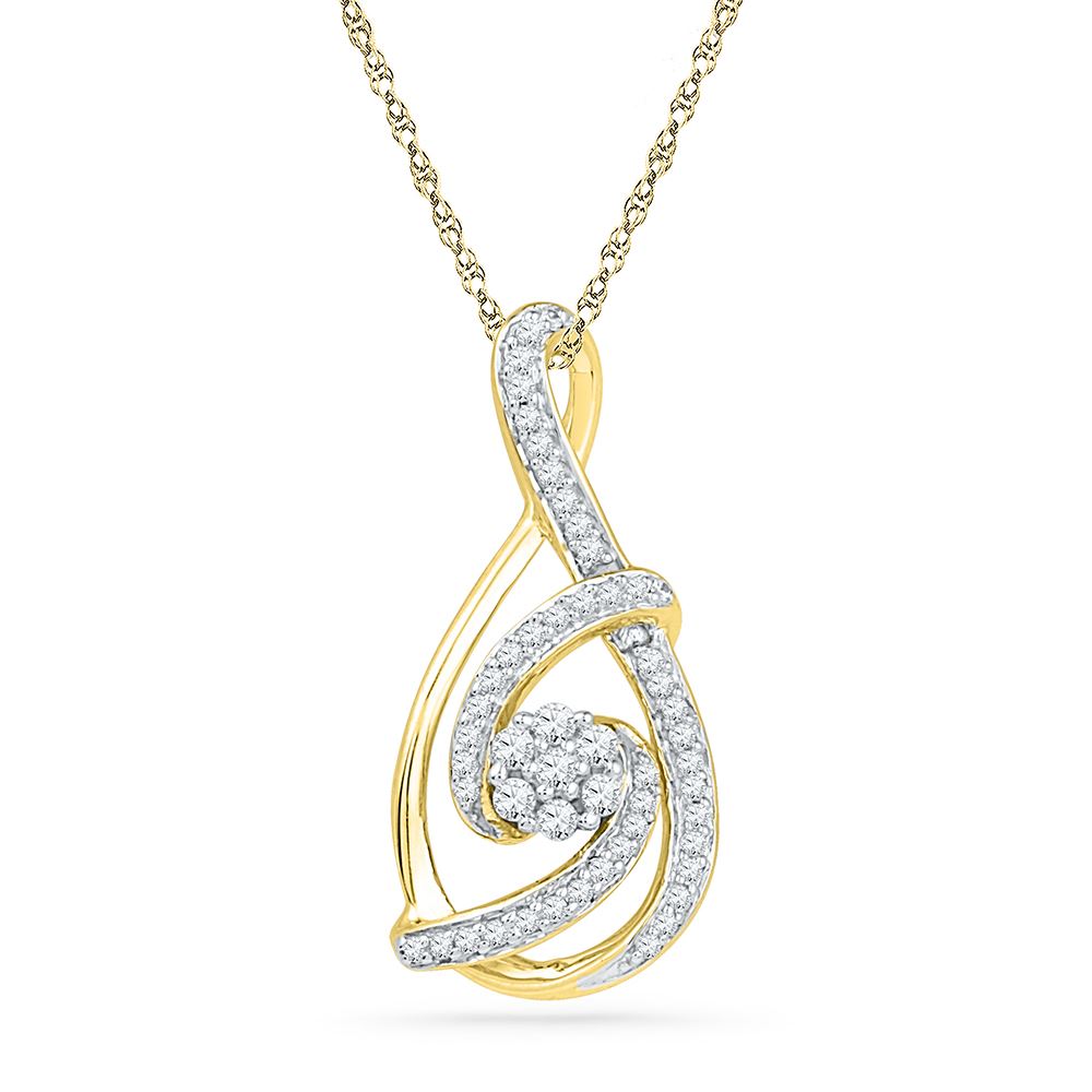 REF-19Y4X- SKU: GD100988 ---- 0.25 CTW Diamond Cradled Cluster Teardrop Pendant 10KT Yellow Gold