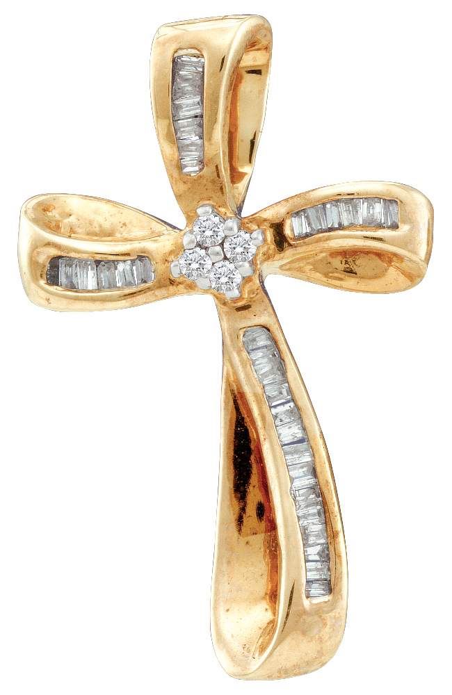 REF-16X4Y- SKU: GD23520 ---- 0.25 CTW Diamond Cross Faith Pendant 14KT Yellow Gold