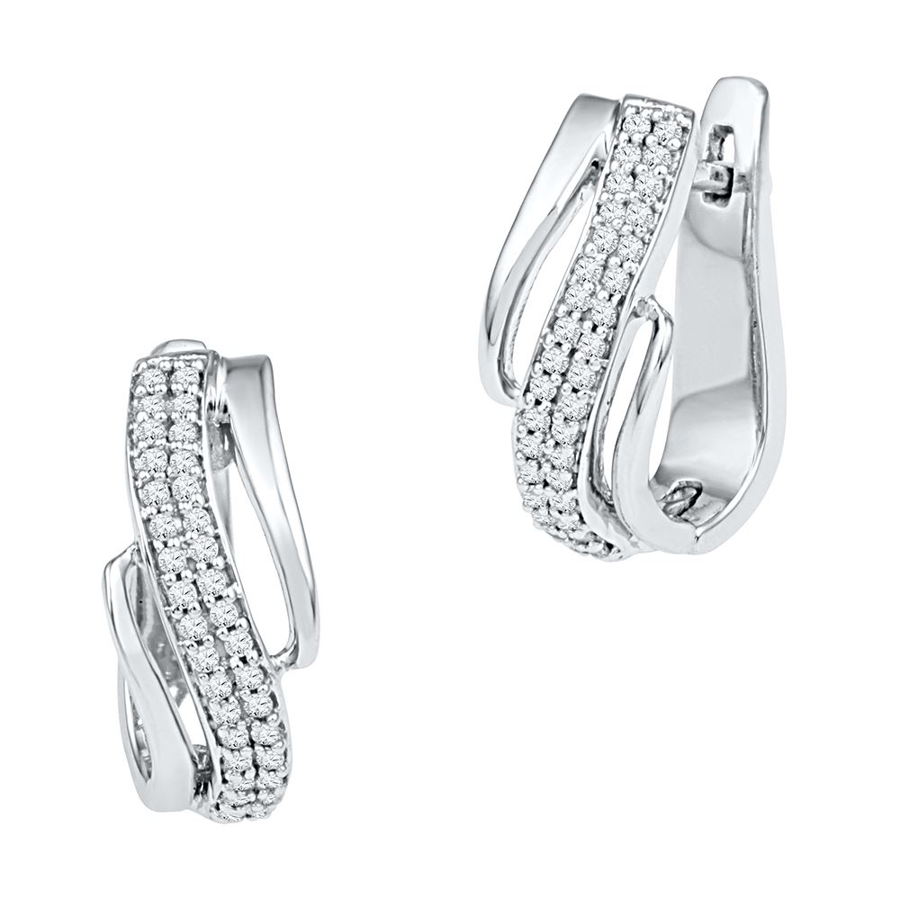 REF-28K4W- SKU: GD101950 ---- 0.25 CTW Diamond Diagonal Double Row Hoop Earrings 10KT White Gold