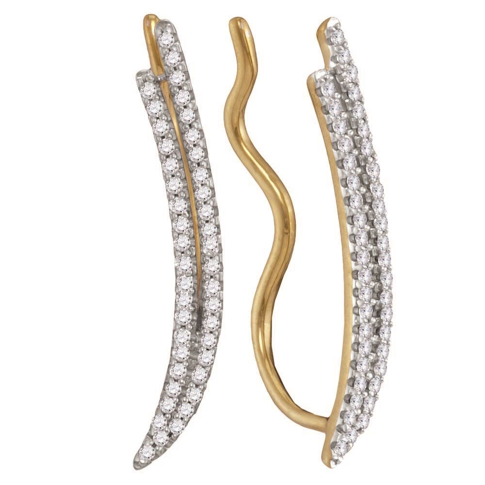 REF-22K4W- SKU: GD116309 ---- 0.25 CTW Diamond Double Two Row Climber Earrings 10KT Yellow Gold