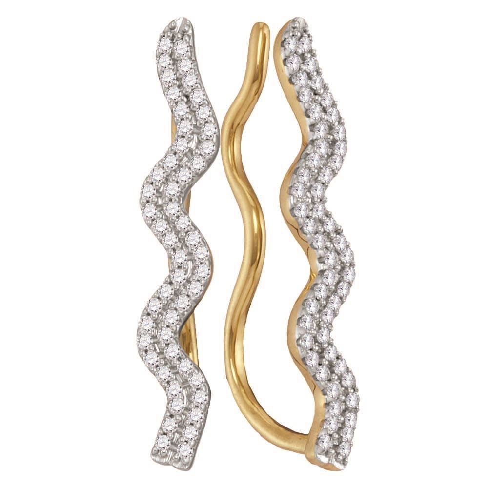 REF-22X4Y- SKU: GD116314 ---- 0.25 CTW Diamond Double Two Row Climber Earrings 10KT Yellow Gold