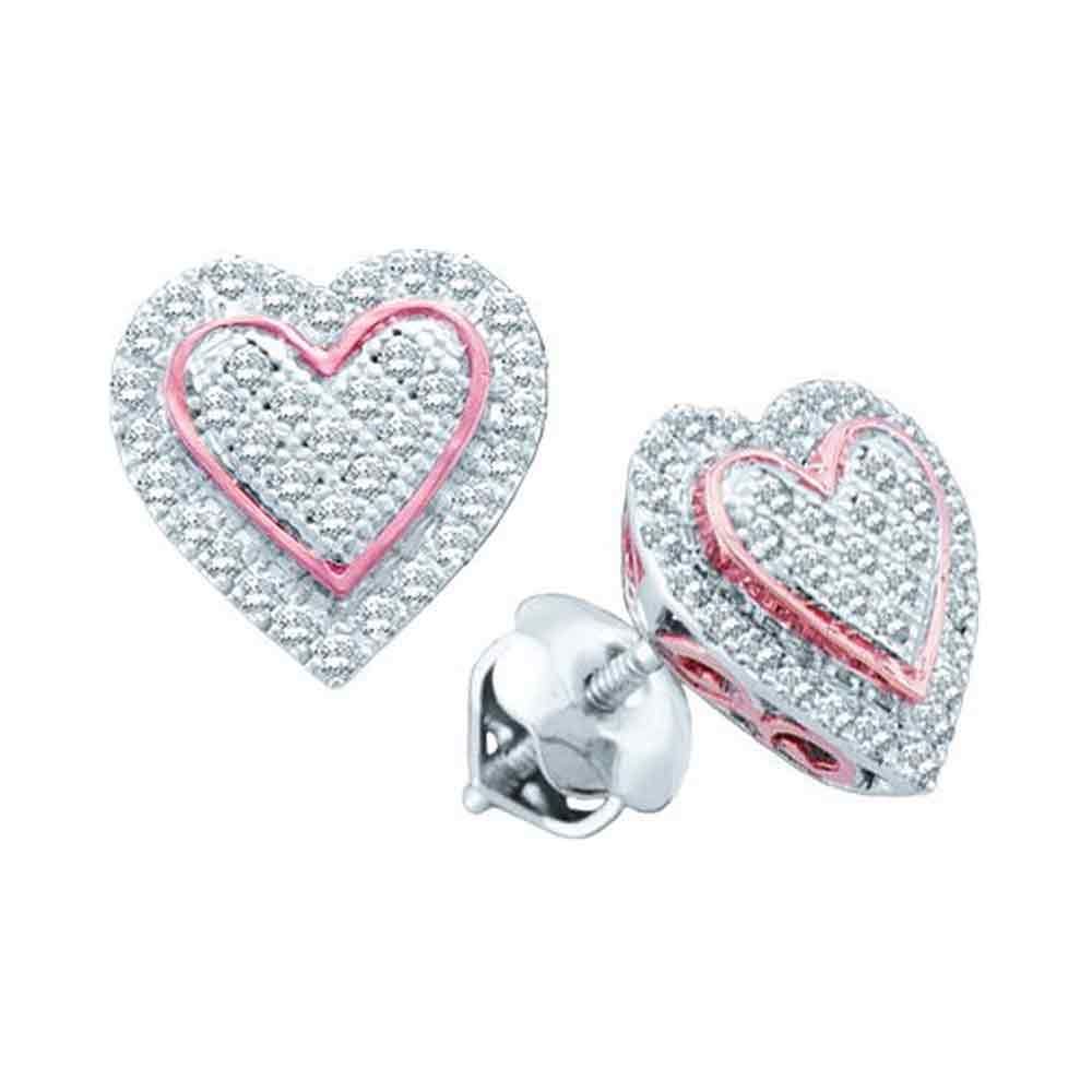 REF-19Y4X- SKU: GD51145 ---- 0.25 CTW Diamond Heart Cluster Screwback Earrings 10KT Two-tone Gold
