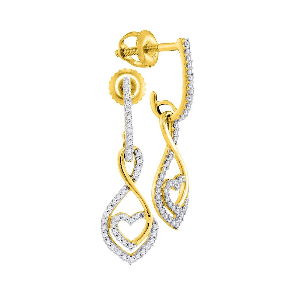 REF-22N4F- SKU: GD98497 ---- 0.25 CTW Diamond Heart Dangle Screwback Earrings 10KT Yellow Gold