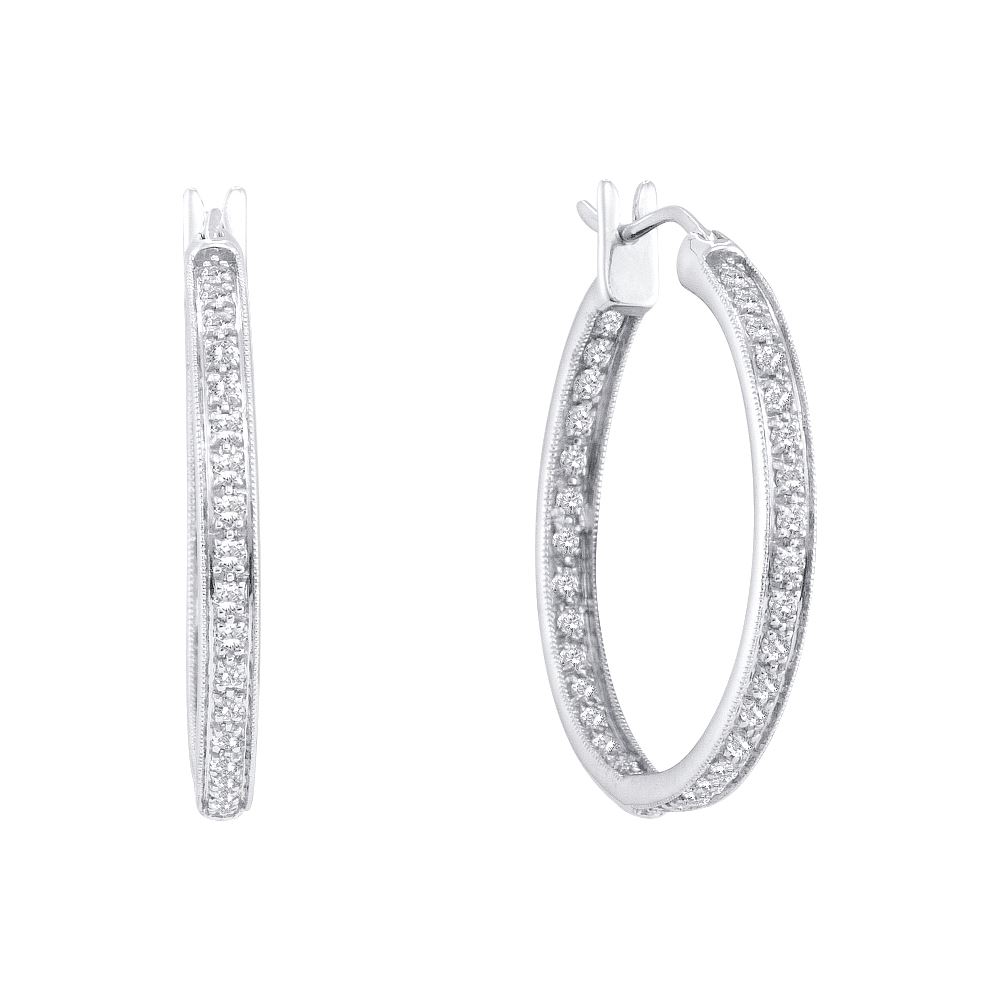 REF-36W2K- SKU: GD51289 ---- 0.25 CTW Diamond In/Out Hoop Earrings 14KT White Gold