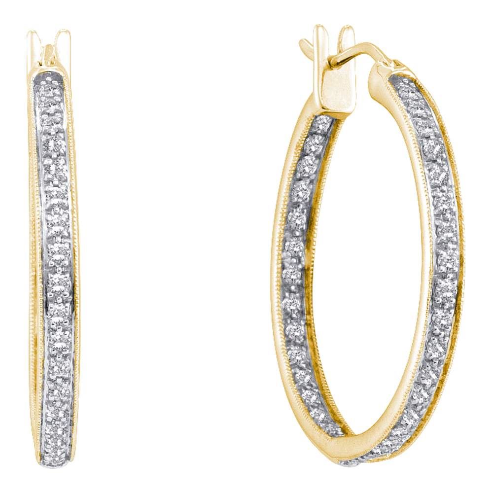 REF-36F2N- SKU: GD51288 ---- 0.25 CTW Diamond In/Out Hoop Earrings 14KT Yellow Gold