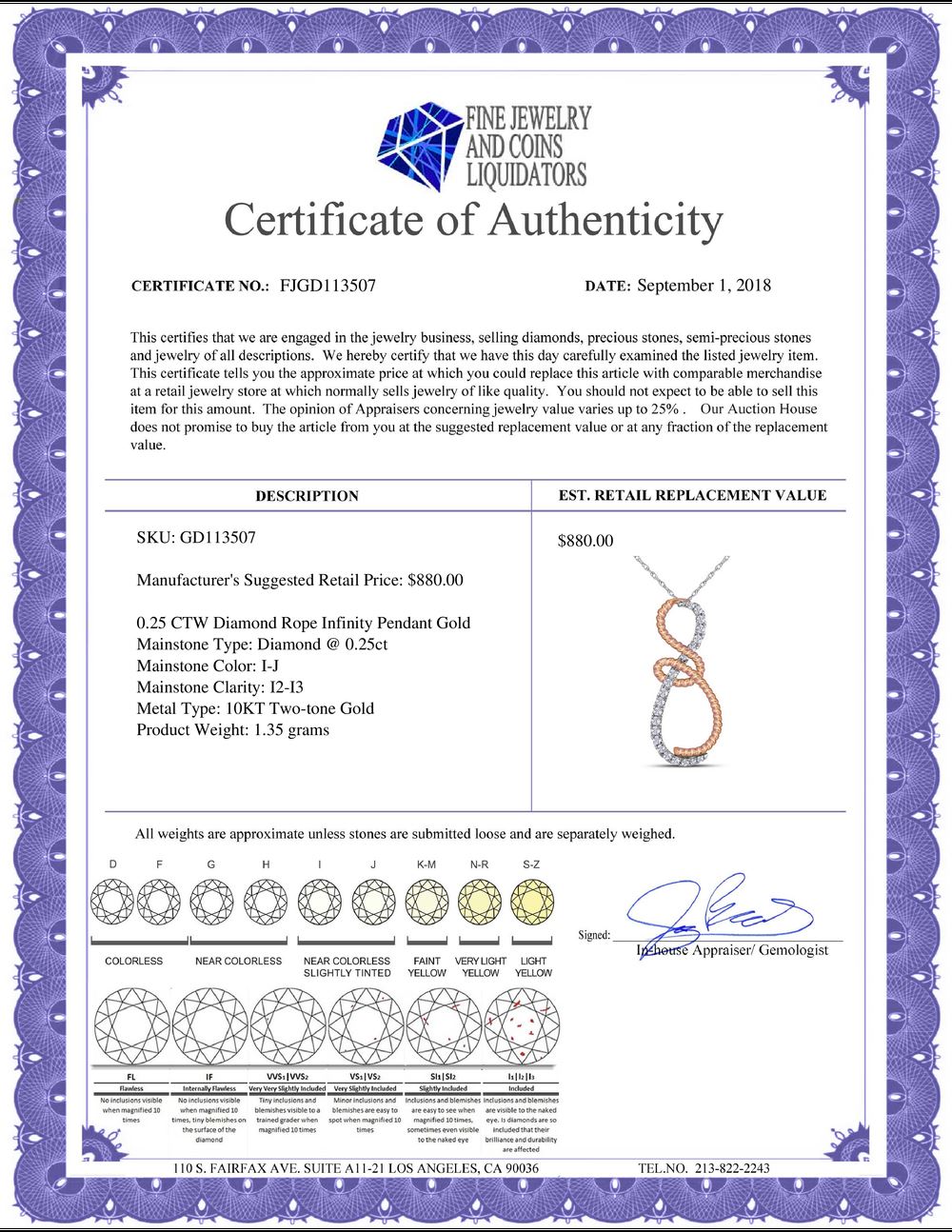 REF-22H4M- SKU: GD113507 ---- 0.25 CTW Diamond Rope Infinity Pendant 10KT Two-tone Gold